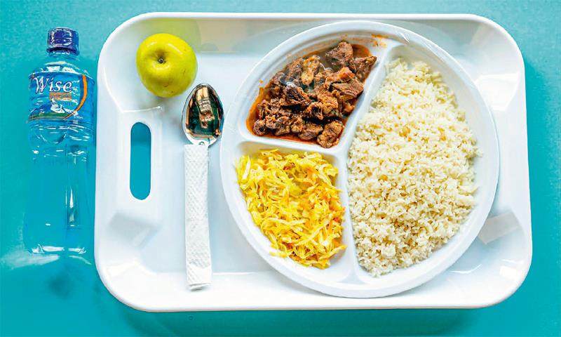 肯尼亚医院的病号餐和当地家常料理差不多,比如早餐是面包或粥配茶,正餐是一种名叫乌伽黎的玉米糊,佐以炒时蔬和炖牛肉。但公立医院面临削减成本的压力,最先牺牲的无疑就是病号餐。早餐的粥会结块,茶水也冲得很淡。中午和晚上的病号餐则好似肯尼亚公立寄宿学校的伙食。食材价格低廉,易于大量烹制,比如大米、卷心菜和豆子。