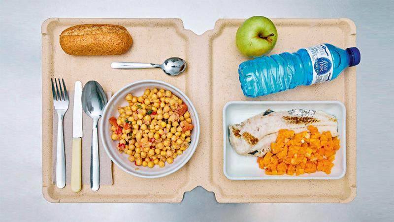 晚餐的前菜有青豆土豆沙拉、葡萄干和松子炒菠菜、土豆煎蛋饼和蘑菇汤。主菜可点杏仁奶油三文鱼配饭、鳕鱼烩菜、洋葱青豆配香肠,还有汉堡或鸡肉配奶酪和葡萄干。甜点通常是水果和酸奶。这些菜光听着都叫人垂涎欲滴。但西班牙人对美食要求很高——医院每餐饭都要一次制作500人份,要满足这些要求并不容易。