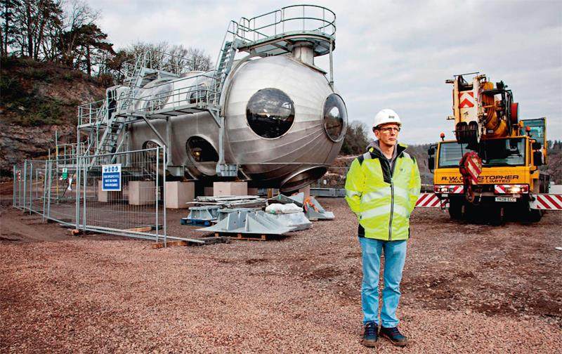 在英格兰和威尔士交界处的切普斯托附近的公路旁,有一条不起眼的小路。拐进去后,卡车、起重机、工人作业的低鸣声与鸟鸣交织在一起,打破了乡村宁静的氛围。我造访那天是一个晴朗清爽的冬日早晨,乍一看,眼前不过是几间临时搭建的活动板房和一个停车场。但在平平无奇的表面之下,一群来自潜水、海洋生物学、科技、金融、建筑、制造领域的专业人士,正在筹建一项非凡的工程。他们有着共同的目标——让人类在水下生活。