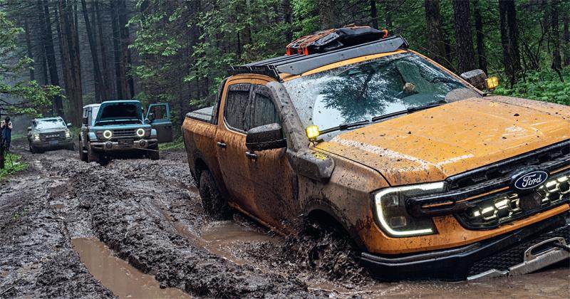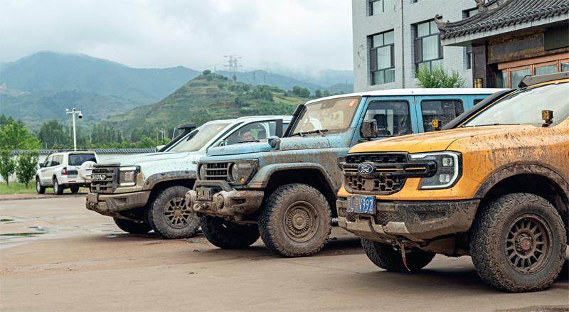 介绍一下本次穿越车辆:福特Ranger、运良越野和厂家共创打造的大道飞将和212长风三辆车,共同点是均在普通原厂素车基础上进行了悬架升高、配备绞盘和高位进气涉水喉、AT越野胎,具备泥地沼泽穿越的基础需求。但因芦芽山内地形复杂,且没有信号,为了保证穿越安全,还聘请了当地具备丰富穿越经验的领队,驾驶一辆老的212以及一辆“穿越利器”随行。