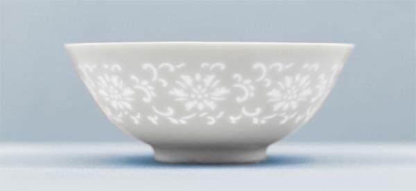 如何欣赏工艺是更专业、更难的一部分。因为一般我们很少接触到工艺。薄是能直观感受到的,如果一件瓷器很薄,我们就会觉得很厉害。这是玲珑瓷,它有点镂空,有玻璃的状态。一打光,这件瓷器是通透的。这种瓷器在解放后非常流行。这属于技术的创新和突破——一件瓷器能薄到没有胎,只有釉。