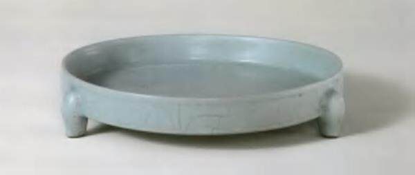 到了宋代,美学上的审美出现了变化。瓷器变得精致、文雅,没有那种壮硕的气势了。宋瓷给人简约、高冷的印象就是这样造成的。这件宋瓷的形状非常简单,是一个直口盘。所有的盘子都是往外撇的,但它的口沿却是直壁的,这很少见。虽然这是一个经典器型,但我们几乎看不到这种直口的口沿。我们经常说叫简约而不简单,那些细边一定是工匠有意做出来的。这是一种装饰——是一道弦纹。这些细节非常值得玩味。它的足实际上非常精彩,大部分器物的足在底下,但是这件宋瓷的足是一半在里,一半在外,有点像在扛着的感觉。这件宋瓷立面和平面的比例非常夸张。家用盘子的盘沿和盘底的比例不会这么夸张。如此很简单的造型之所以能够成为经典,是因为它有很多可以玩味的地方。