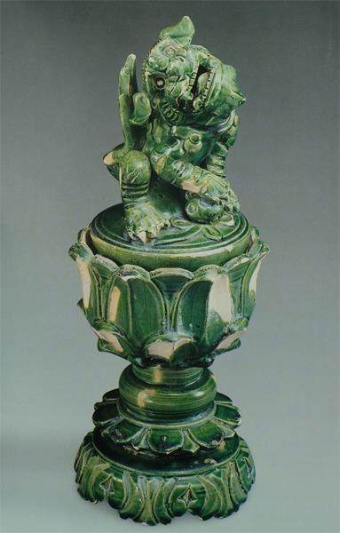 这件宋瓷是一件高度复杂的作品,非常精彩。首先,它颜色很漂亮,看上去有点偏色。这是早期的低温绿釉。这件宋瓷体现了狮子的姿态。中国没有狮子,狮子是舶来品,但狮子又非常受欢迎,在王府外面要立石狮,民间会有舞狮。造型之美大体有两种类型;一种是规则器皿类;一种是雕塑类。这件瓷器是这两类型的结合。它连座的复杂性处理得很好,我们不会觉得这件瓷器非常繁复,这是由于节奏把控得好。