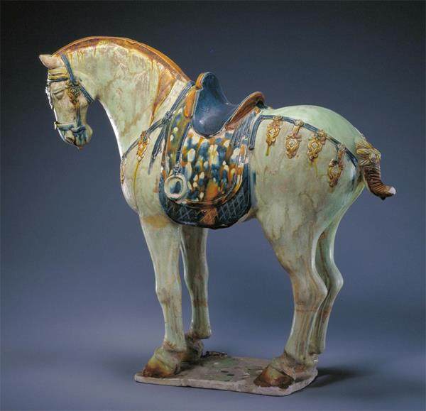 这件唐三彩非常写实,因为当时的人们从上到下都喜欢马。工匠在表达的时候有非常多的观察。所以,那时唐三彩马的塑形高度写实,非常精彩。在纯粹的艺术品当中,这件作品也是典范。而且,唐三彩不是瓷器,它是釉陶,它的温度比较低,还没有烧成陶的状态。
