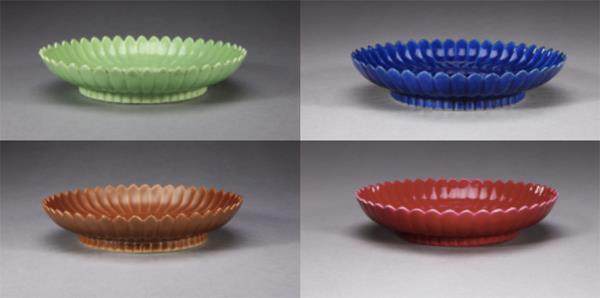 十二色菊瓣盘能代表雍正皇帝的品位。现在的工艺比那个时候好,但在那时,做十二块颜色的盘子要面临的技术障碍有很多。每一种釉的处理方法不一样,而且每一种釉在釉面上都显得很均匀并不容易,因为它有很多小曲面。我之前尝试烧了高温红釉,我也烧出来了,但是烧得不好看。不是颜色不好看,而是转角部分不太容易挂釉,釉薄就会露白——因为胎是白的,露白很多很破坏整体感。