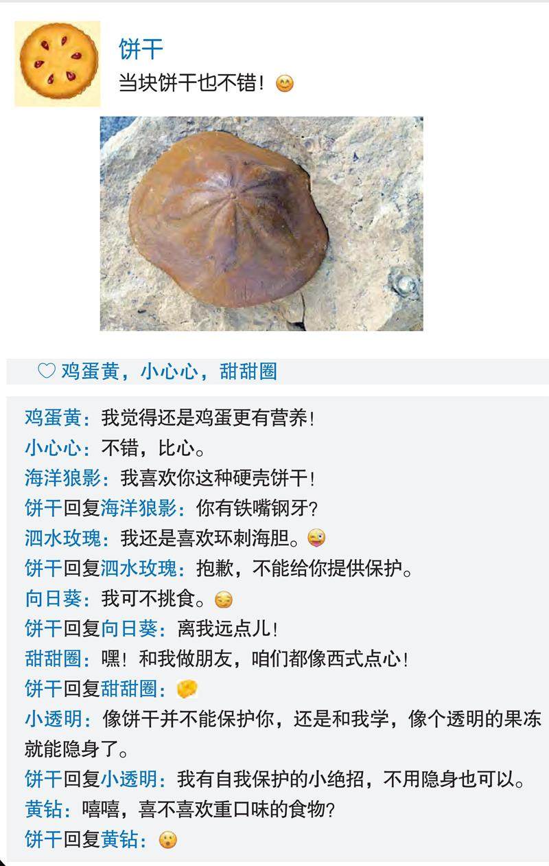 大家好,我的外形扁圆扁圆的,壳上的5块有孔区域,伸出用于呼吸的管足,看上去就像刻了一朵五瓣花图案,让我看起来更像一块精美的小圆饼干。但是可别想着吃我,自然界中很少有动物能把我当点心,因为我有秘密武器:坚硬的外壳配上难吃的口味,让我在海里很少有天敌。朋友们,你们知道吗?在浅海里晒晒太阳,当一块“躺平”的小饼干真的很不错!
