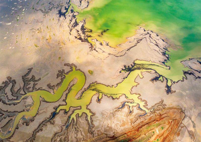 入海口是泥沙书写的地球史诗。黄河以年均16亿吨泥沙的洪荒之力,在山东东营塑造出“鸳鸯锅”奇观——浑浊河水与湛蓝海水划出清晰界线,160年间向渤海推进50 千米,被誉为“世界造陆冠军”。长江则以更绵长的耐心,用两千年时间将入海口从扬州推至上海,孕育出崇明岛这座世界最大河口冲积岛,以及长兴、横沙等沙岛群。而辽河与双台子河合力冲积出的三角洲,则拥有亚洲面积最大的芦苇沼泽湿地,秋日芦花如雪,铺展成银色海洋。