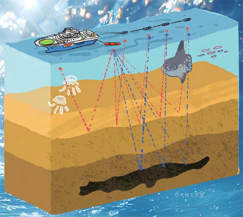 那如何激发地震波呢?陆上地震勘探常用炸药、可控震源、重锤等人工震源激发地震波,而海上、湖泊等水中勘探则是使用气枪震源激发地震波(是目前水域勘探主要采用的人工震源类型之一)。想象一下,科学家们要在茫茫大海中“拍照”,但不是用普通相机,而是用声波给海底“做CT”。这就是气枪震源的绝活!这种特殊设备通过在水下制造可控的“气泡爆炸”,产生强大的声波信号,帮助我们看清海底的地质结构。但这个气枪既不是奥运会射击比赛用的气枪,也不是我们在电视里经常看到的具有威胁性的武器,而是一种用于水中勘探的激发源。它之所以被冠上“枪”的名号,是因为它的威力不容小觑。地震学家也用气枪在水库里面通过反复“放炮”,试图绘制出地下云图!气枪震源具有相对安全、环保、可重复释放、能量可以精确控制等优势,就像一个精确可控的、可以反复燃放的炮仗。