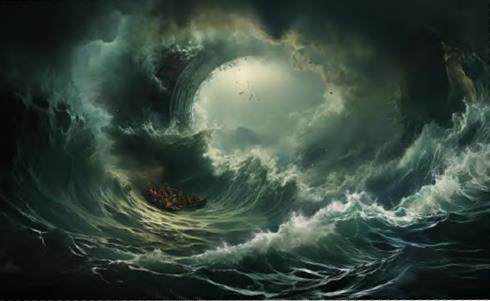 希腊神话中的许多神或妖都象征着人们对大自然的认识,塞壬也不例外。在神话里,塞壬盘踞的海域共有三个海妖,分别是兴风作浪的塞壬、遭人陷害而化作礁石的斯库拉,以及被囚禁而心怀怨念、每日吞吐海水形成漩涡的卡律布狄斯。这三个海妖正好对应了海上航行中会遇到的三种困境—急流、礁石和漩涡。而神话里这处充满了急流、礁石和漩涡的地方,正是位于地中海的墨西拿海峡。