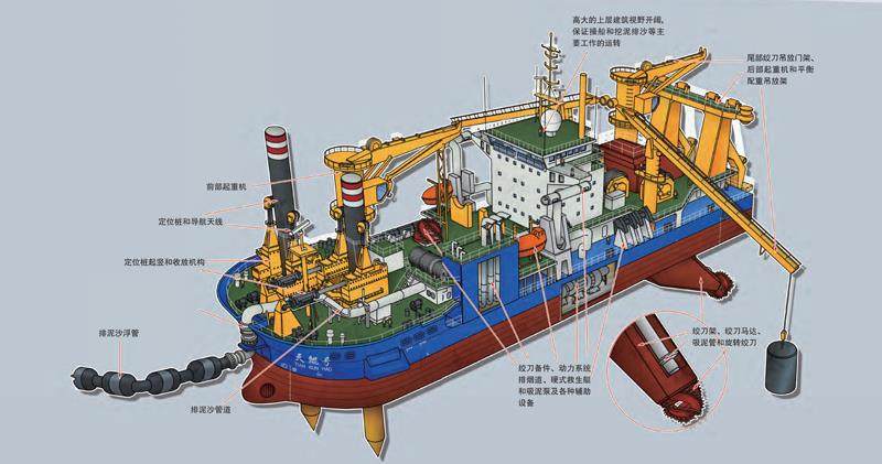 “天鲲号”是重型自航绞吸船,具有6600千瓦绞刀功率,设计每小时挖泥6000立方米,是目前亚洲最大、最先进的绞吸挖泥船。锋利的绞刀“啃”碎海底坚硬的岩石,海沙随即被吹填到十几千米以外的地方……疏浚“神器”“天鲲号”是名副其实的“国之重器”。2019年11月30日,该船被评为第二届优秀海洋工程,彰显其在海洋工程领域的卓越贡献。