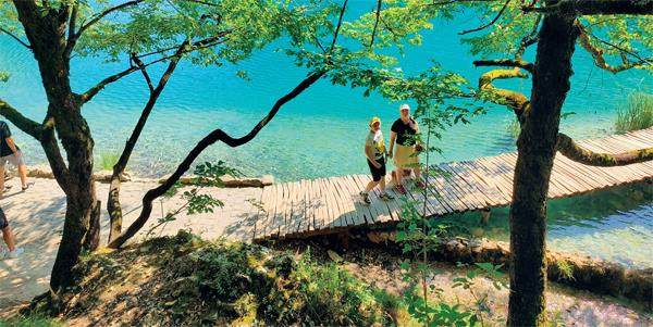 下午2时,我们来到普里特维采湖国家公园。当地的人们称它为“十六湖”,意味着此地有16个连在一起的湖泊。公园在1949年就建成了,1979年入选世界文化遗产名录,被称为“欧洲九寨沟”。游览的感觉固然不错,但比起九寨沟来还是略逊一筹。虽然这里也是相连串起来的湖泊群,有沉积水中而不腐的老木,也有十分清澈透明的流水,碧波荡漾的湖水中游鱼历历可数,但远没九寨沟磅礴大气。只是这里的空气十分清新,景物在阳光湖水的映衬之下显得风姿绰约、明媚动人。在此地拍出的照片十分明快,透露着一股人间仙境的甜美。