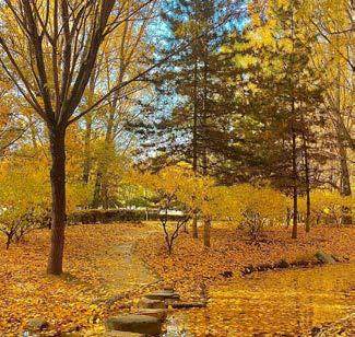从公园南门进去,最先撞入眼帘的就是那条百米银杏道。十月下旬的风一拂,原本翠绿的叶子便悄悄换了衣裳。走在道上,脚下是软乎乎的落叶,头顶是交错的 “金伞”,阳光透过叶片的缝隙洒下来,在地上织出斑驳的光影。