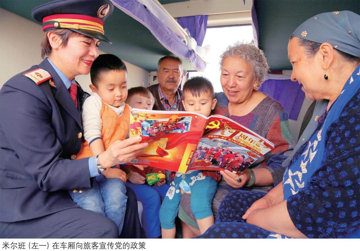 为了让各族旅客能够在列车上了解党中央的各项政策,米尔班组织党支部党员开展“学党报、话团结、跟党走”主题活动,把党员、入党积极分子和青年骨干组织起来开展宣讲。