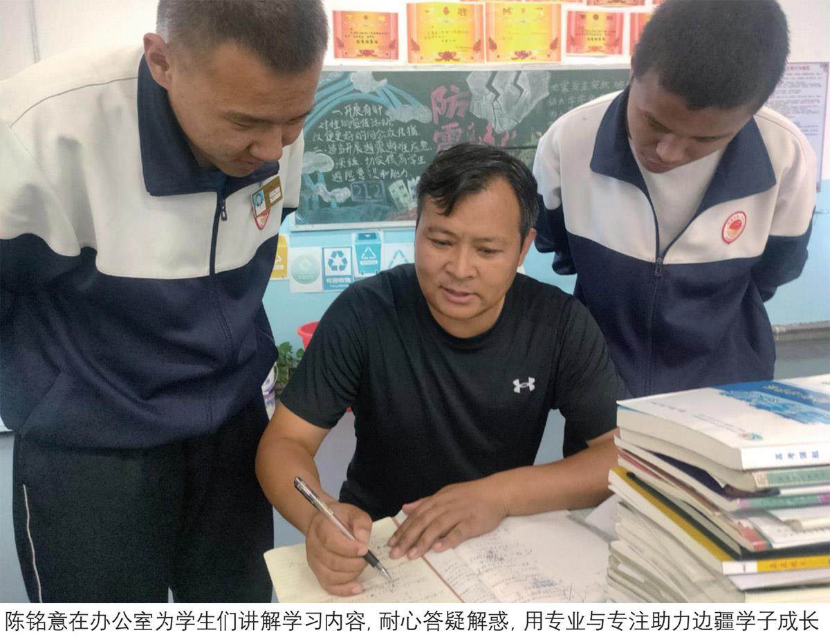 这片土地早已成了他的第二故乡。如今走在塔城街头,不时有学生笑着喊他“陈老师”。以“爱心、宽容、恒心、热爱”注解教育初心,他在与学生的双向奔赴中找到人生归宿,更以“老志愿者”的身份呼唤更多青年扎根边疆。陈铭意的故事,从来不是一个人的跨越山海,而是像他一样选择留在边疆的教育者以平凡坚守深耕课堂、以爱心教泽学子的真实写照。