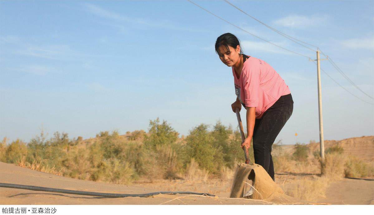 2005年,23岁的帕提古丽中专毕业,刚结婚不久。身边的同龄人或在县城的棉纺厂、超市务工,或在家操持家务、照顾孩子,她却在父亲的劝说下进入沙站工作,参与防沙种树治沙。很多人不理解,说一个女人家,晒得黑黢黢的,去沙漠里遭罪。连婆婆都劝她,风沙大,累出病来咋办,不如在家安安稳稳过日子。面对质疑,她没有动摇,“且末是多民族人民的家,要是没人治沙,地没了,家就没了。风沙不等人,要跟它抢时间”。