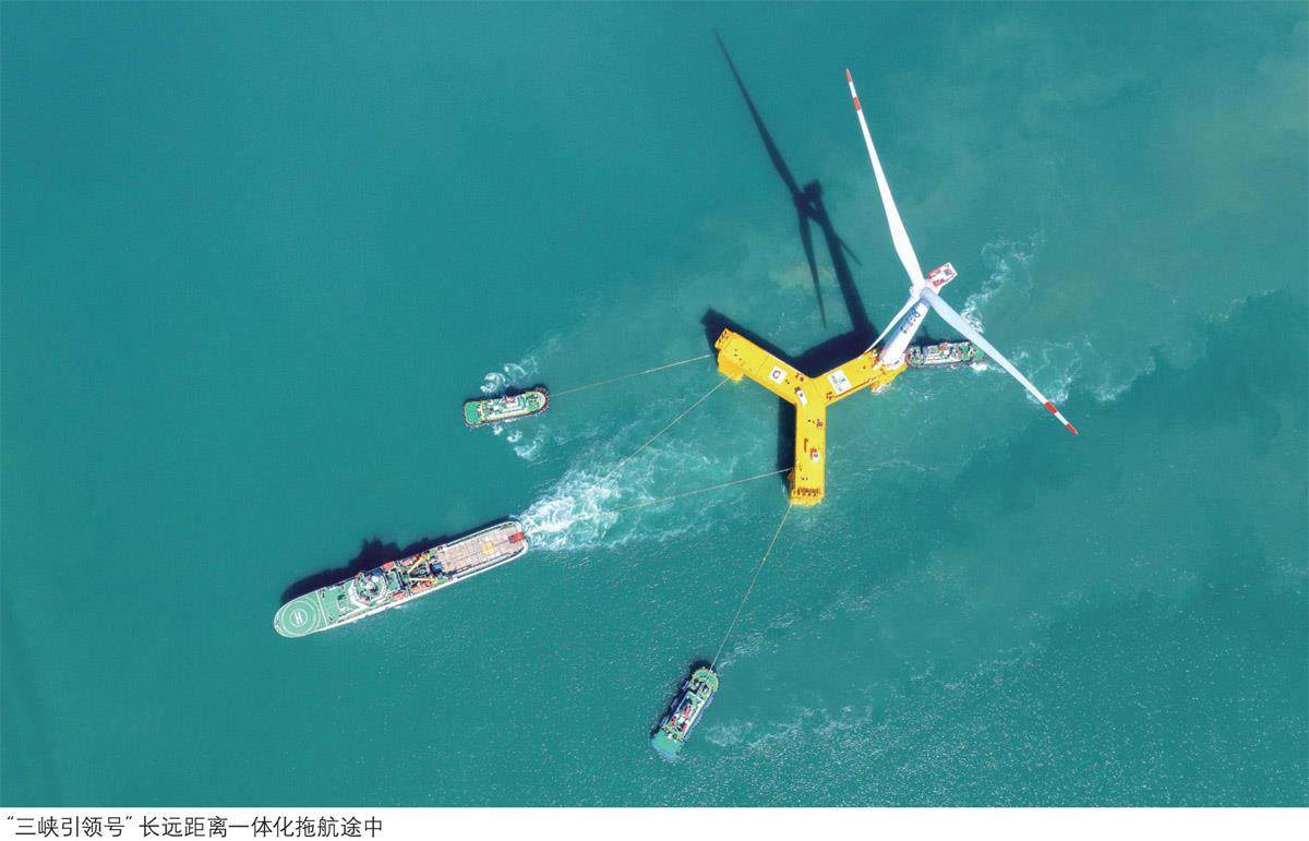 在中国南海的广袤海域,一个白色的“大风车”牢牢矗立在三角结构的漂浮平台上,远远望去,悠悠转动的巨大桨叶十分醒目。这就是我国拥有完全自主知识产权的全球首个抗台风型漂浮式风电机组及基础平台——“三峡引领号”。它的叶片转动1小时,便能满负荷发电5500度,足以支撑一个普通三口之家两年的用电需求。