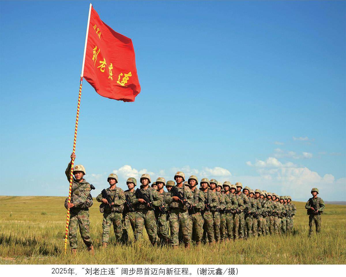 在纪念中国人民抗日战争暨世界反法西斯战争胜利80周年阅兵式上,伴随《钢铁洪流进行曲》,战旗方队中一面承载8 2 年峥嵘岁月的战旗格外醒目——“刘老庄连”四个大字在阳光下熠熠生辉。这面战旗背后,是1943年3月18日82名勇士以血肉之躯阻敌千余、壮烈牺牲的英雄史诗,是82年来一茬茬官兵对“生命不息、战斗不止”连魂精神的传承,更是新时代革命军人向着实现建军一百年奋斗目标冲锋的铿锵誓言。