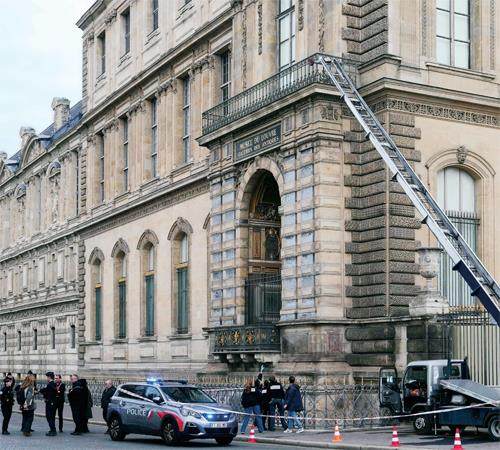 当天上午9:30,有四个蒙面人驾驶两辆大马力摩托车和一辆带有便携式家具升降机的卡车停在了卢浮宫博物馆外。接着,他们利用梯子爬上了卢浮宫的一个阳台,再用切割机切开玻璃窗,闯进了卢浮宫的阿波罗画廊。他们先是用切割机威胁警卫,后又用它割开两个陈列柜,抢走了8件历史意义非凡的珍宝,而后逃离。整个过程仅仅耗时7分钟。“没有暴力,非常专业。”法国文化部长拉茜达·达蒂对法国电视一台说。