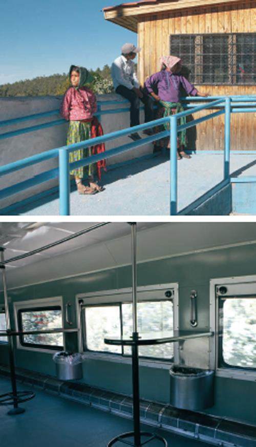 车厢上保留了过去老式的吧台布局,同时配备持枪巡警。铜峡谷地处美墨边境,16世纪西班牙人抵达之后,天然的峡谷地势、糟糕的交通状况,让这里成为众多边缘人趋之若鹜的避难所:强盗、邪教徒、杀人凶手、科曼奇族斗士、阿帕奇武士、盗矿者、政治流亡者,偶尔还有反政府武装组织,这其中就包括当年令美国人头疼不已的阿帕奇首领杰罗尼莫和他率领的印第安抵抗军。