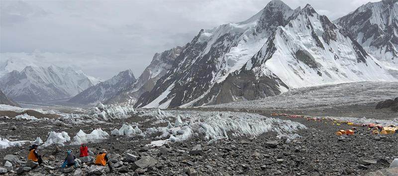 胡涛作为“14peak(十四座)&SST”团队的中国队员,在K2大本营待了一个多月,“印象里大本营很少下雪,大多是下雨”。他告诉《户外探险》,从ABC(前进营地)到二号营地的整个攀登线路上,有很多岩石裸露在外,有些路段全是密集的碎石,还夹杂着一些大石头,哪怕你把冰爪紧紧贴在岩石上,稍微用点力,都可能带动石头往下滚。