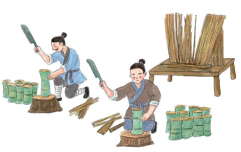 现在,我们写字都是在纸上。你们知道纸是什么时候出现的吗?2000多年前的西汉时期,随着手工业的发展,人们已经用植物纤维造出纸了。到了东汉时期,蔡伦改进造纸术,纸渐渐得到普及。那在纸发明之前,人们又是如何做记录的呢?远古时期,人们采用结绳记事;殷商时期,人们选择将重要的事情刻在甲骨上;商周至秦汉时期,青铜器成为权贵阶层记录重大事件的选择。不过,青铜器造价高昂,无法普及。此时,竹简和木牍逐渐成为主流的书写材料。