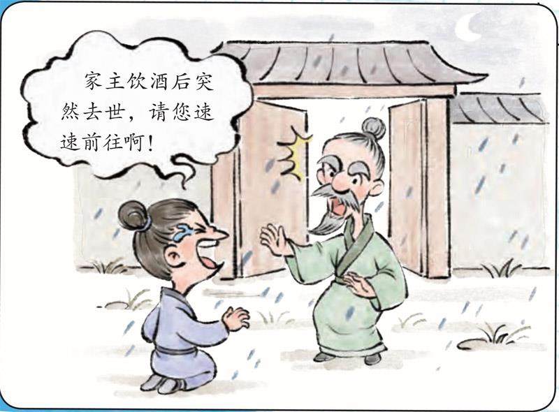 “村长”听后派人迅速通知衙门,同时带人冒着大雨匆忙赶往现场。只见富商趴在桌上,酒杯中的酒洒了一桌,残留的酒还在不停地滴到地上。