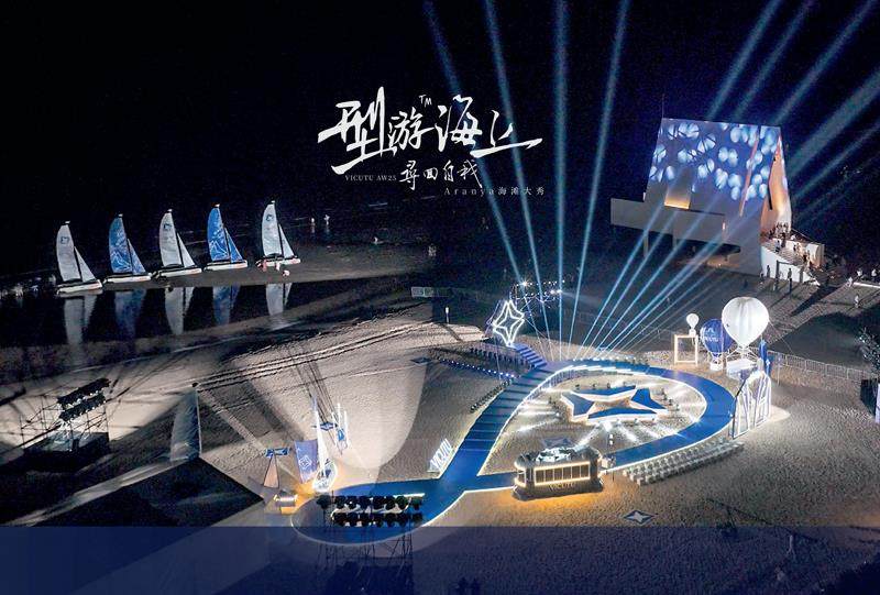 9月的阿那亚,海天一色,暮色四合。这片被誉为中产精神乌托邦的海岸,一场史无前例的时尚盛宴正徐徐展开——9月13日,“型游海上,寻回自我”VICUTU AW25阿那亚海滩大秀于此展开。这不仅是民族男装品牌首次于阿那亚举办沙滩大秀,更是一次连接民族文化与海洋自由气息的深刻探索,在这场大秀中,VICUTU用服装语言讲述了一个关于男士现代风格探索与回归的完整故事。