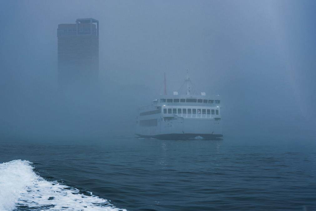 在濒海区域旅游,最不确定的因素就是天气,一天之中阴晴不定,这为旅行摄影增加了不少考验。我在濑户内海的雨季开始了这次充满挑战的拍摄之旅,雨雾天出海,增加了一丝神秘感。在暗光环境下,我尝试使用胶片模拟色彩和简约的构图去表现海洋的空旷和阴雨天的神秘。