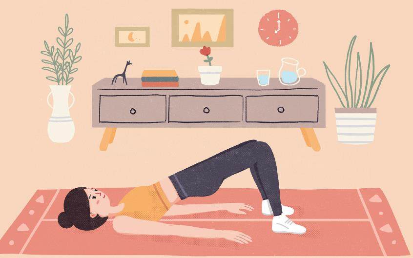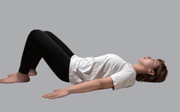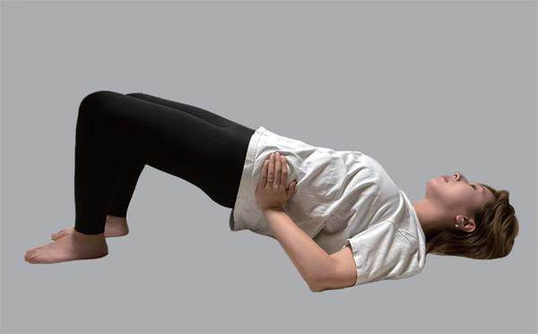 取仰卧位,以双足、双肘和头部为五点支撑床面,缓慢抬起腰臀形成拱桥状,每次抬起腰臀可保持3—5秒,再放松回落2—3秒,每个完整动作的周期是5—8秒。整个动作无需过度追求幅度,以练习者腰背肌有轻微收缩感为宜。