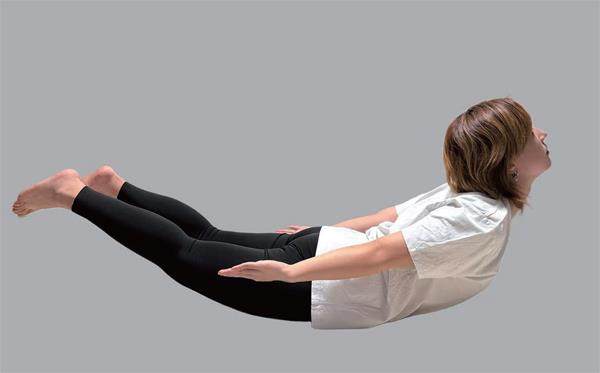 取俯卧位,同时抬起头、胸、双腿,双臂自然向后伸展模拟飞行动作,腹部贴床或地面作为唯一支撑,保持短暂时间后缓慢放下。抬起的动作应持续3秒,回落的动作需要3—4秒。练习时要注意避免快速抬升或过度后仰,以防止腰椎压力骤增。