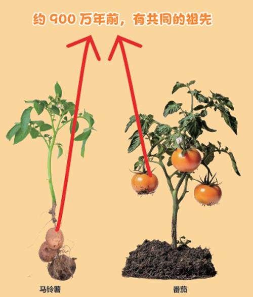 科学家发现, 约900 万年前, 一部分茄科植物(番茄的祖先类群之一)与另一类茄科植物(类马铃薯的祖先)打破生殖隔离杂交,形成了马铃薯的祖先。