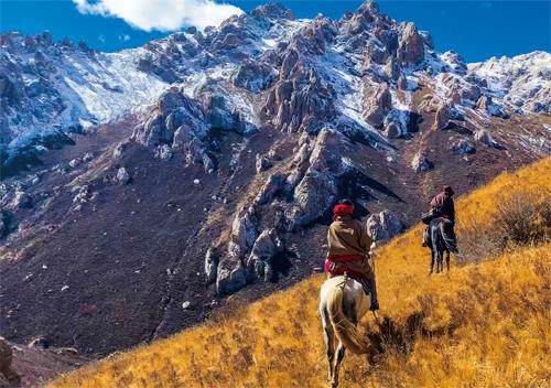 夏季的进山之路异常艰难,从肃北蒙古族自治县石包城通往无人区的路时断时续,若不是有熟悉路况的当地师傅带路,根本无从找寻通行线路。石包城地处山间盆地,是进入祁连山腹地的天然入口,也是进入无人区之前最后一个补给点。车队时而穿梭于山石嶙峋、阴气森然的峡谷,时而行驶在荒滩旷野,时而在窄小山沟里曲折前行。这里与世隔绝,距离有信号的区域超过200千米,手机成了摆设。